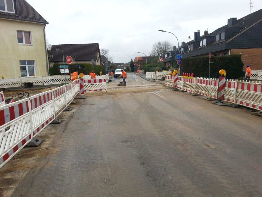 an die Verkehrsteilnehmerinnen und Verkehrsteilnehmer aus Nah und Fern, das Sturmtief "Sabine" ließ Böses erahnen, denn mit dem Inkrafttreten der rechtlich erforderlichen Verkehrsanordnung für die Vollsperrung der L 75 (Barmstedter Straße / Peterstraße / Bahnhofstraße / Hörn) schien die zeitliche Umsetzung der Tief- und Straßenbaumaßnahmen für die Versorgungsmedien Oberflächenwasser, Gas und Trinkwasser über den gesperrten Kreuzungsbereich stark gefährdet.