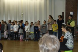 Die Alvesloher Kinder hatten extra ein Lied einstudiert, das sie den Eltern, Besuchern und Gästen in der Schulhalle vortrugen.